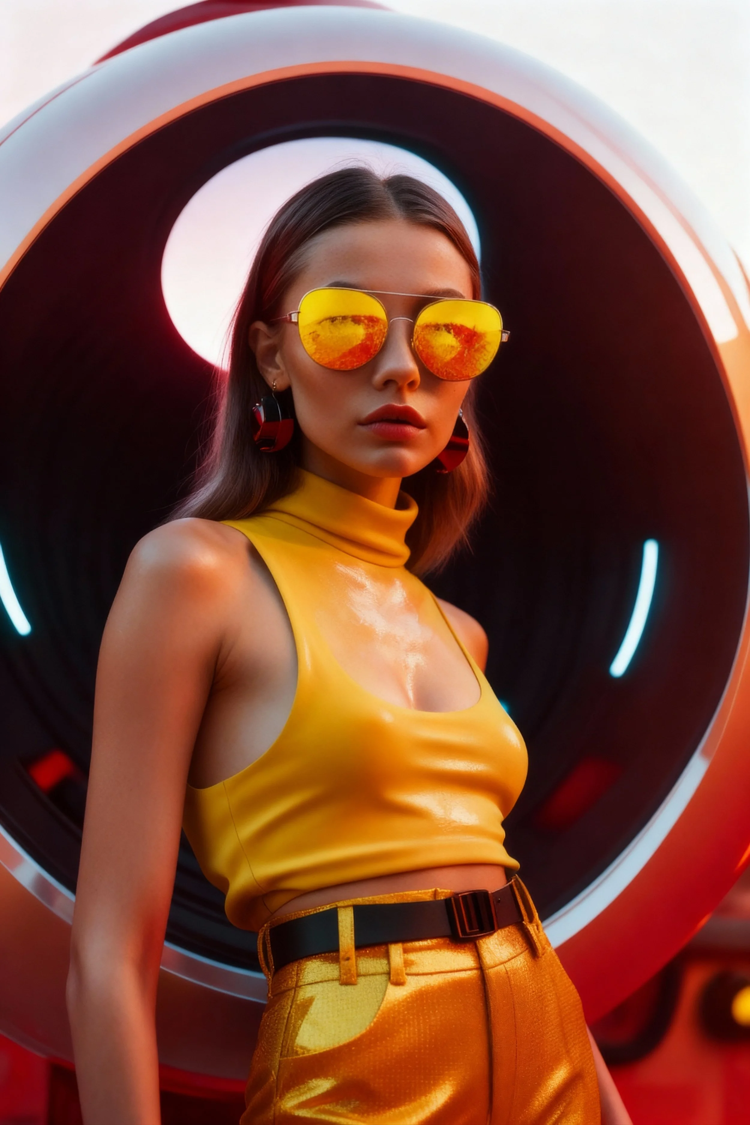 **Innovative Beauty**: The beauty in this series lies in the innovative fusion of fashion and technology. The glasses, equipped with futuristic features, add an element of intrigue and sophistication to each portrait. It's a tribute to those who embrace the cutting edge of style.